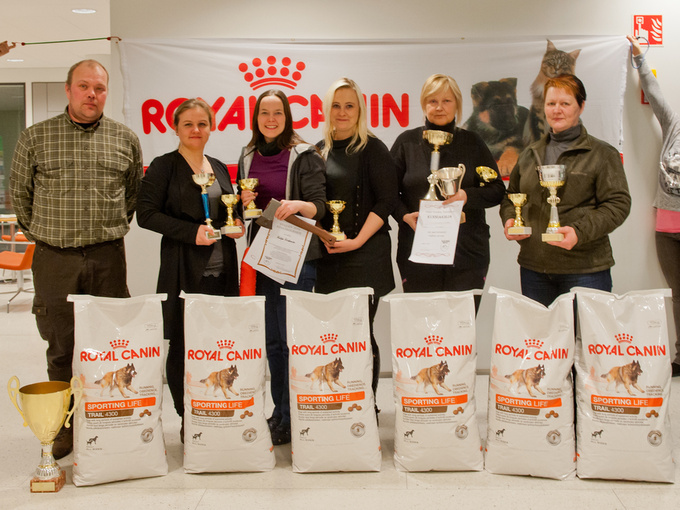 ![]() Ryhmäkuvassa 1.3.2017 vuosikokouksessa palkittujen vuoden 2016 parhaiden koirien omistajia |